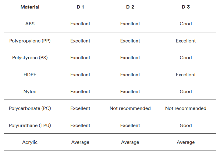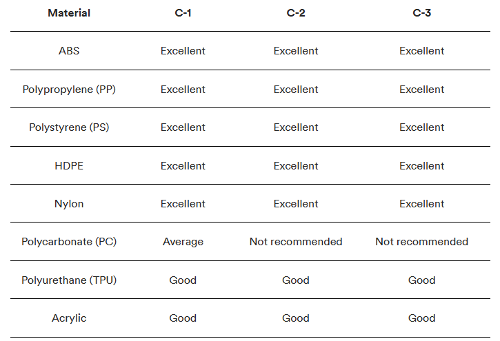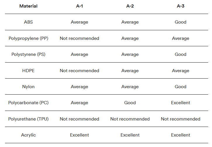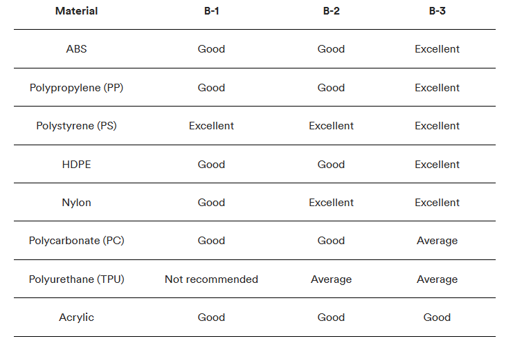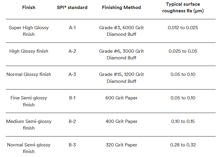 SPI overflade/støbefinish giver forskellige resultater afhængigt af det materiale, du bruger til sprøjtestøbningskomponenter. Tabellerne nedenfor beskriver, hvordan du vælger den rigtige formfinish og materialer til din specifikke anvendelse.